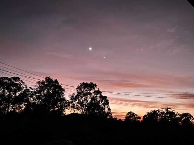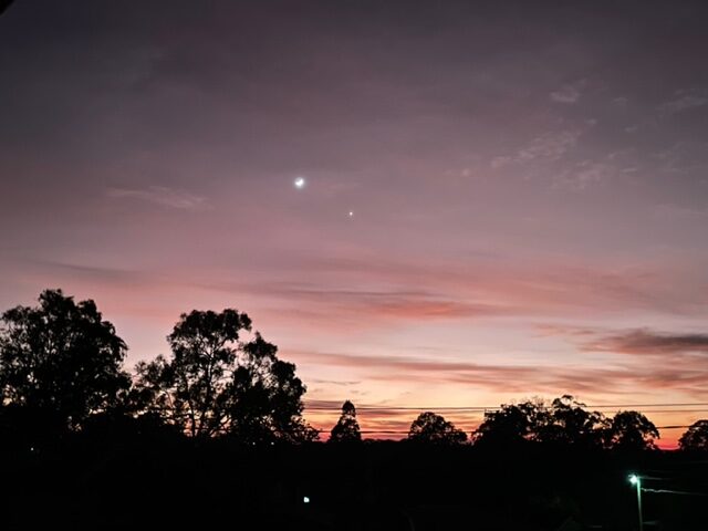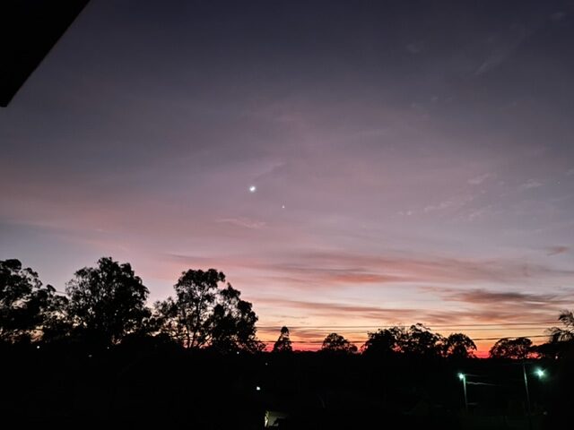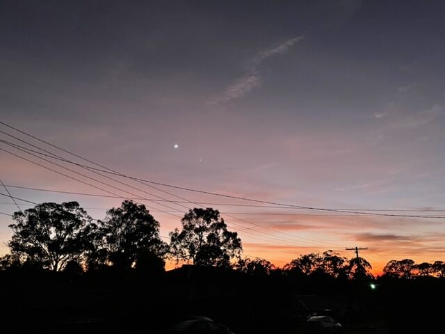 The below photos were taken near Brisbane, Australia, on June 26, 2022 between 5:44 and 6:45 am. Being the Southern Hemisphere, this is winter time with sunrise around 6:30 am.