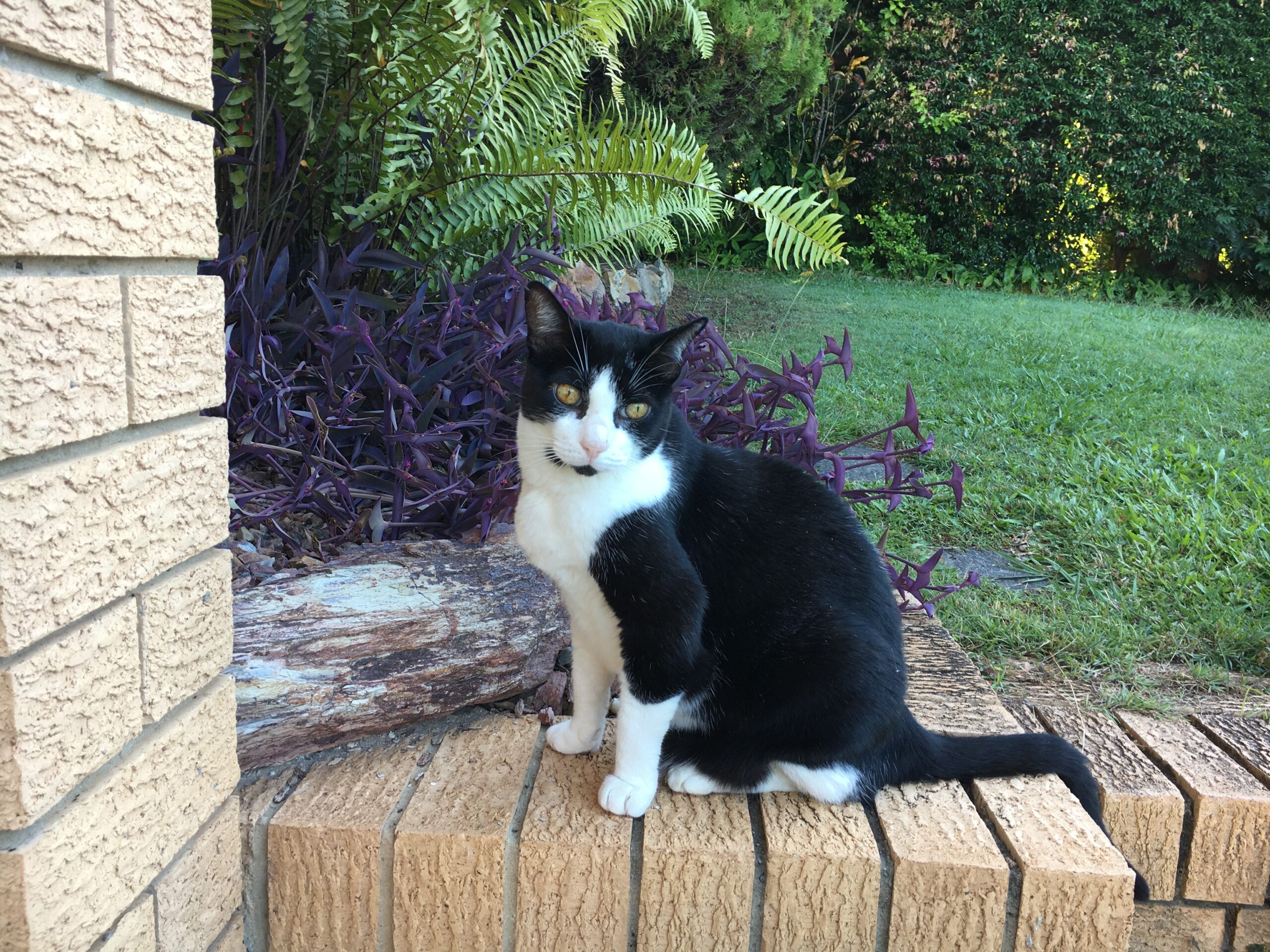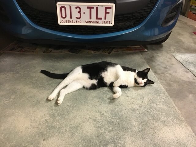 Blackie was a gift from God. She belonged to our neighbor, Scott, across the road. Originally she came from a shelter as a kitten when the family’s previous cat met an untimely death in 2002 or 2003. We may have sighted her from time to time, but only met her after returning home from teaching overseas, in 2007. One day she appeared in our backyard palm garden and looked like she was trying to have a drink from our pool. I had pity on her and brought her a plate of milk.