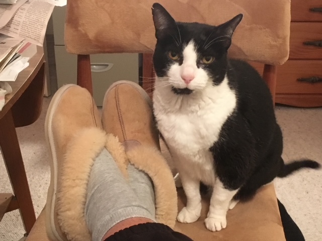 Except for an insect bite on her back leg about three years ago, from which she recovered, she remained healthy throughout the time she was with us. She was aging gracefully and didn’t appear to have much if any arthritis. She would effortlessly jump onto the sofa and chairs, and down again. She remained spunky and quite active till close to the end. In the morning, when we let her into the house, after her morning back-rub, she headed straight to her bowl in the kitchen – ready for her breakfast When it wasn’t coming right away, she would jump up on a kitchen chair and look over the kitchen counter, as if to ask, “Is it ready?” or, “When is it coming?”